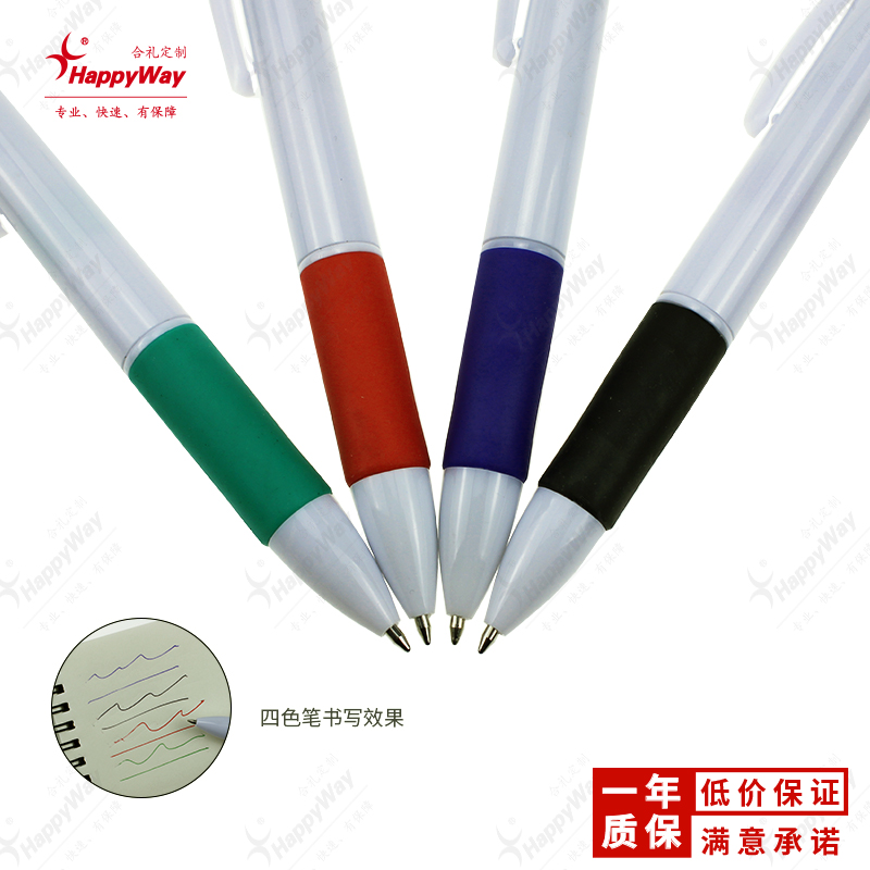 商务白杆4色圆珠笔 10支起企业礼品定制可印Logo展会促销品