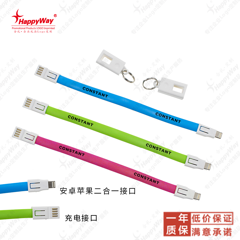 多功能钥匙扣二合一充电线 100条起可印logo促销宣传展会派发活动礼品