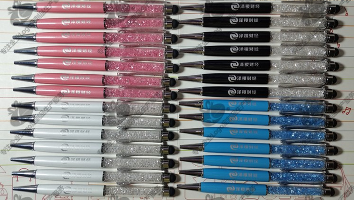 产品资料:(笔身镶入仿钻石颗粒晶莹剔透,增添美感;笔帽处增加触屏功能,品牌宣传效果好)