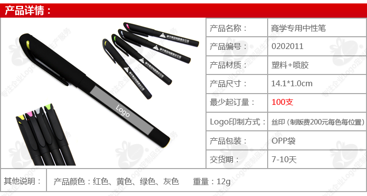 产品资料 (书写流畅,LOGO印制效果非常好)
