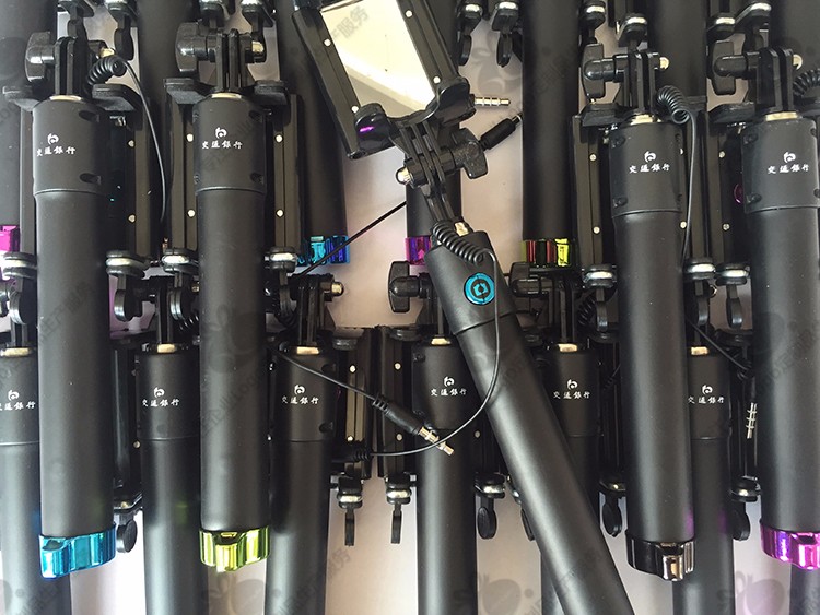 1.黑色线控带镜子自拍杆