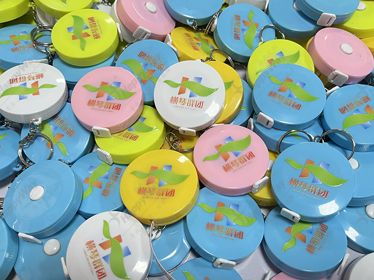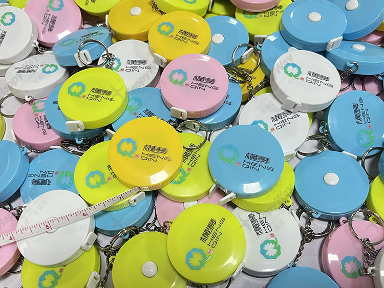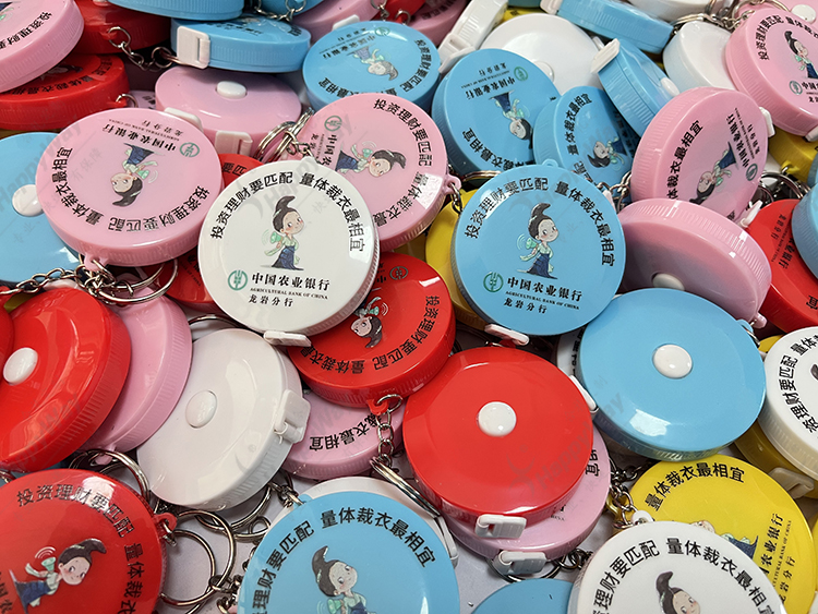 1.5米多彩实色圆形卷尺钥匙扣 100个印logo促销活动礼品定制