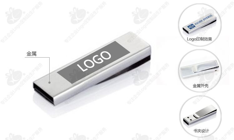 4G金属书夹U盘 10个起订企业商务活动送客户激光定制logo促销品