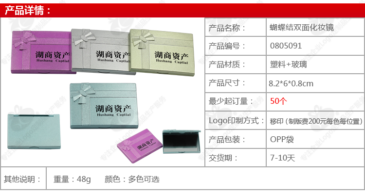 蝴蝶结双面化妆镜 50个起订印logo生活家居用品展会宣传促销小礼品
