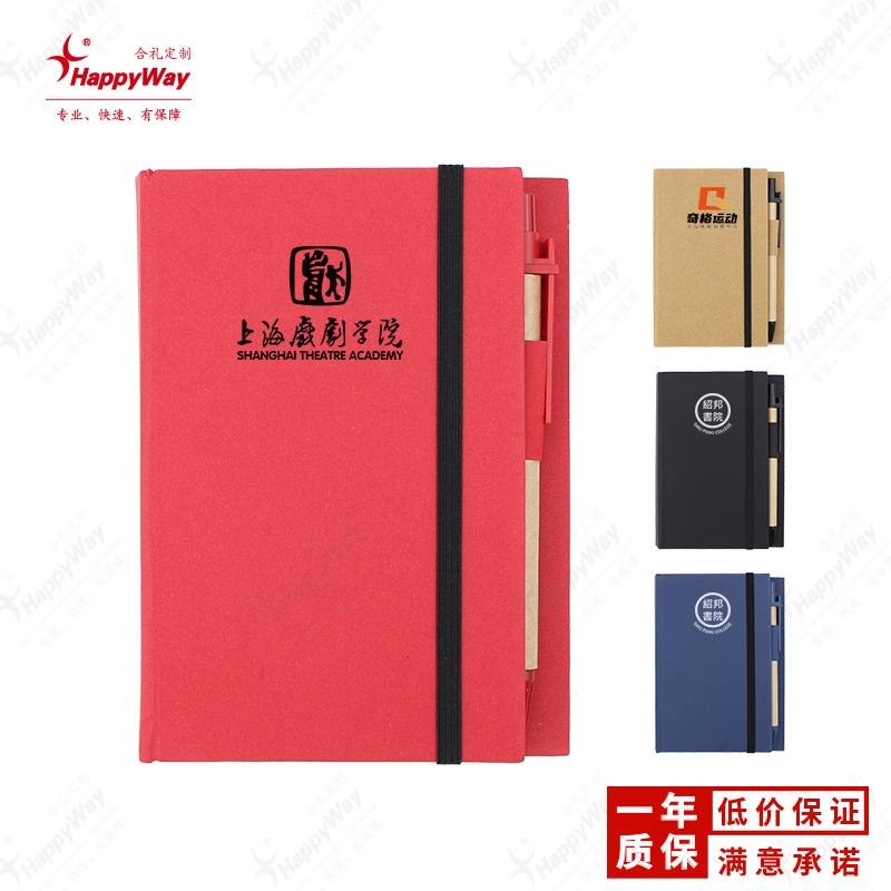 高品质PET贴松紧绳带笔组合记事本 50本起可印Logo企业展会促销礼品