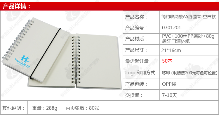 简约收纳袋A5线圈本-空白款 50本起企业礼品定制可印Logo展会促销品