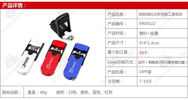 创意抽拉式多功能工具组合 50件起可印定制logo促销宣传展会小礼品