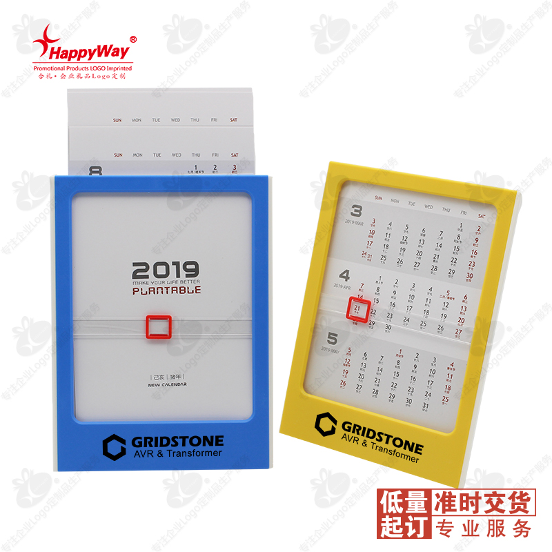 精致滚动条三月同现记事立架台历 50个起印logo企业展会宣传礼品