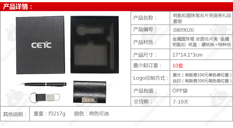钥匙扣圆珠笔名片夹商务礼品套装 10套起订logo定制展会商务打造企业品牌专属礼品