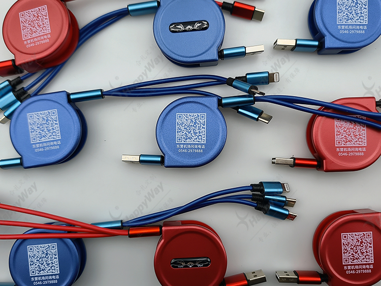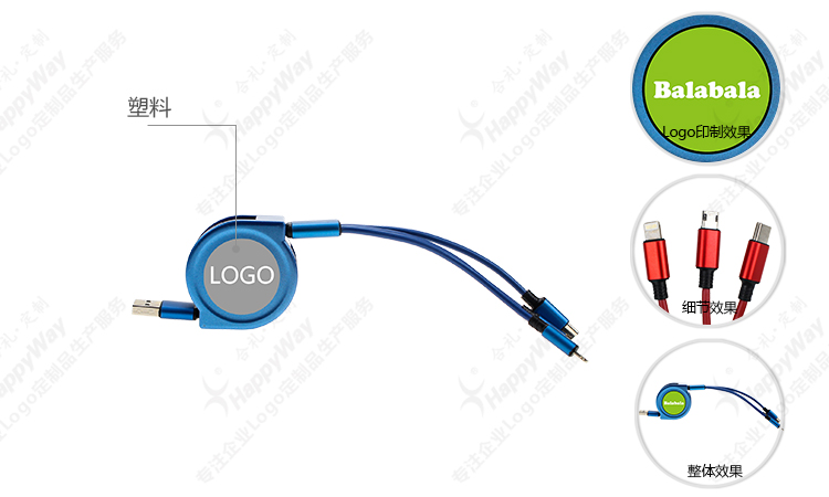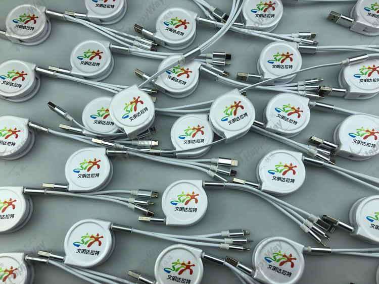 伸缩一拖三充电线 10个起可印logo促销宣传展会派发活动礼品