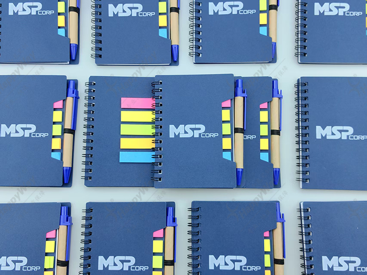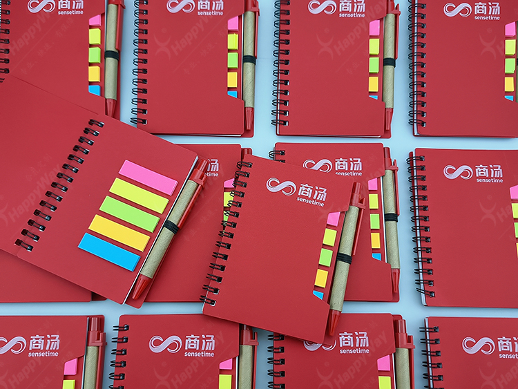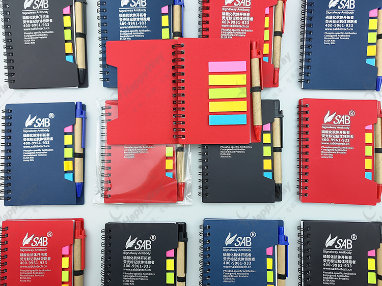 线圈多色实用带笔便签本 50本起可印制LOGO办公文具小礼品定制促销派发