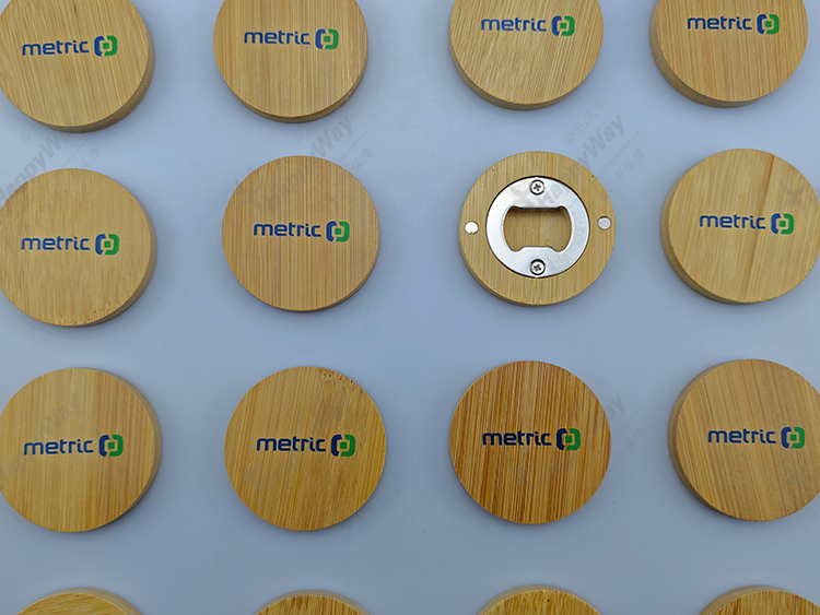 竹制圆形冰箱贴开瓶器 10个起可印logo企业展会促销创意定制广告礼品