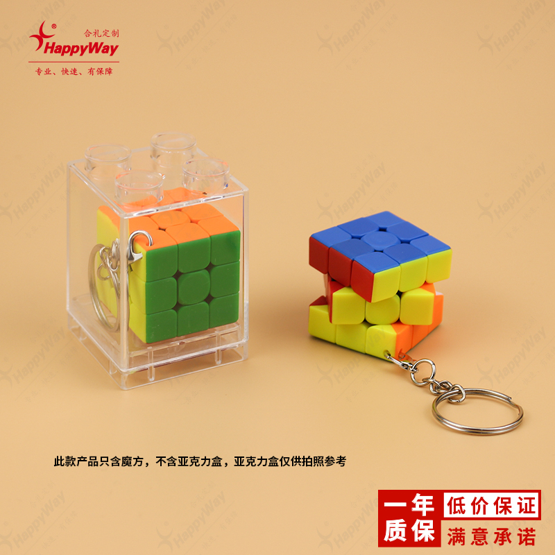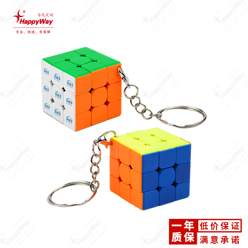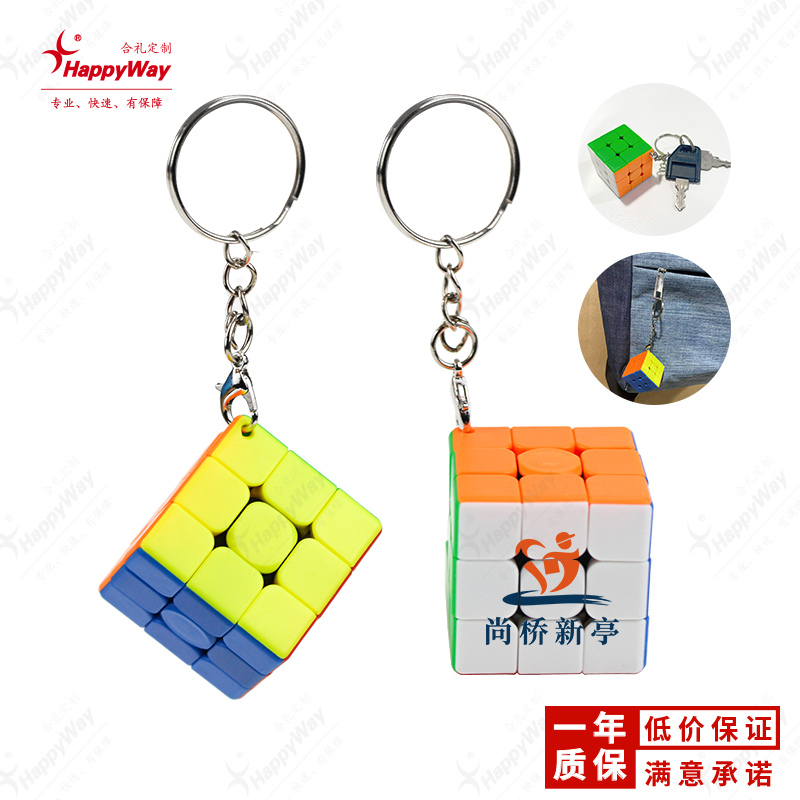 3CM三阶实色钥匙扣魔方 10个起可定制logo运动商务展会活动广告礼品