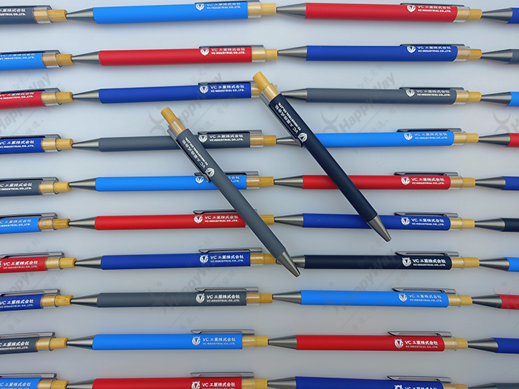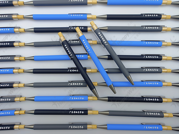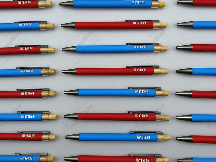 环保竹木按压铝杆签字笔 1支起可印logo学习办公活动广告促销礼品
