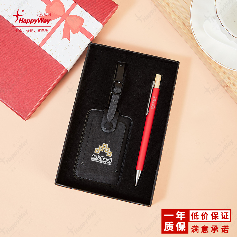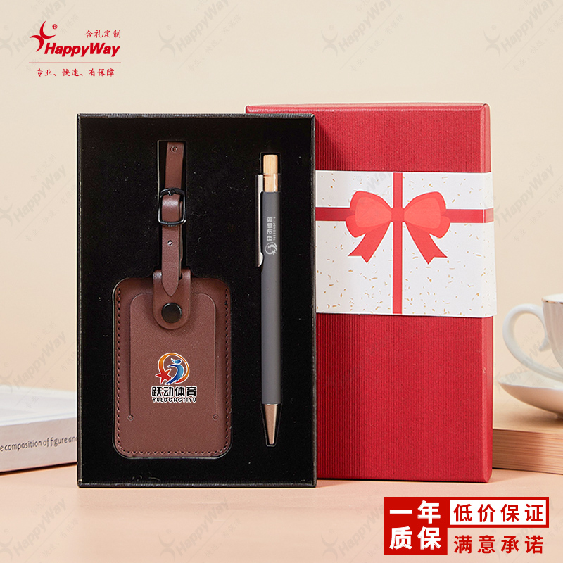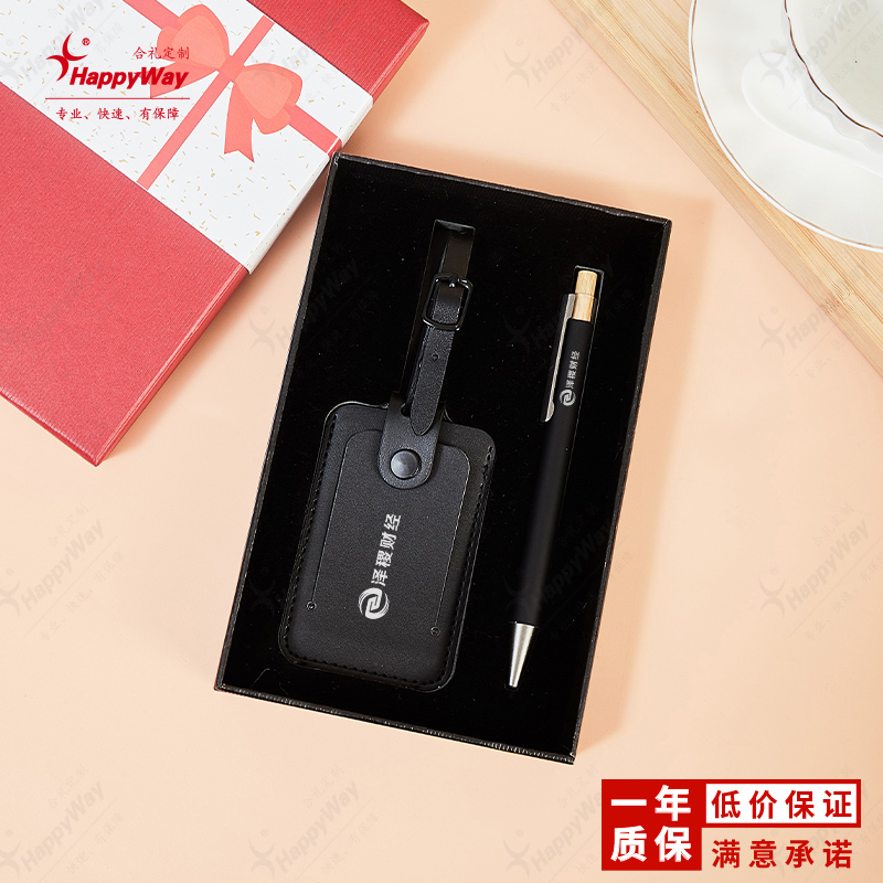 商务PU行李牌签字笔套装礼盒小号 1套起订印logo办公旅行活动礼品
