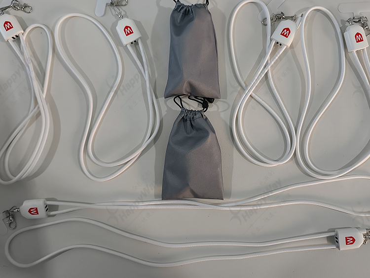 便携四合一斜跨数据线 10个起可印logo学习办公出行手机配件小礼品
