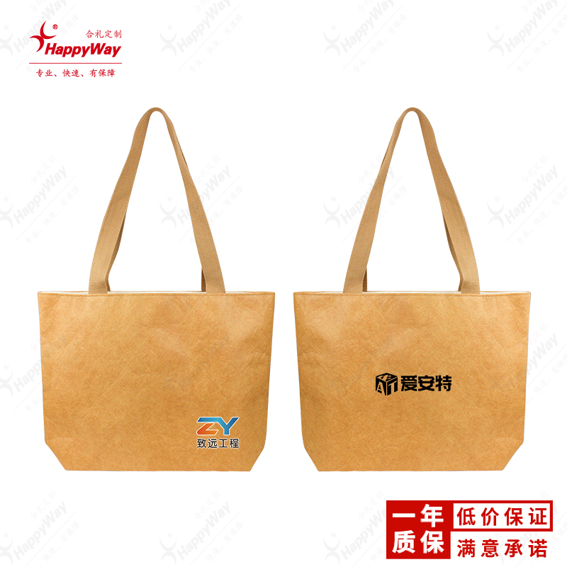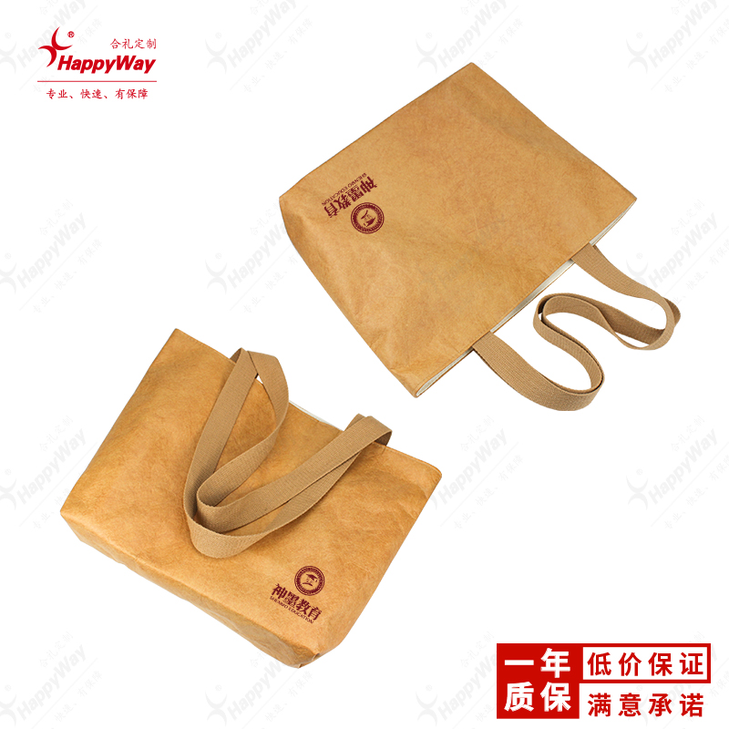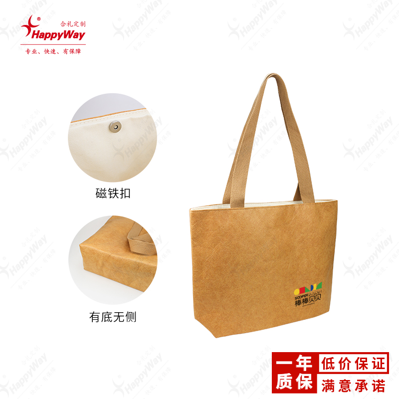 揉纹牛皮杜邦纸有底无侧帆布袋 10个起可印logo旅行收纳广告宣传礼品