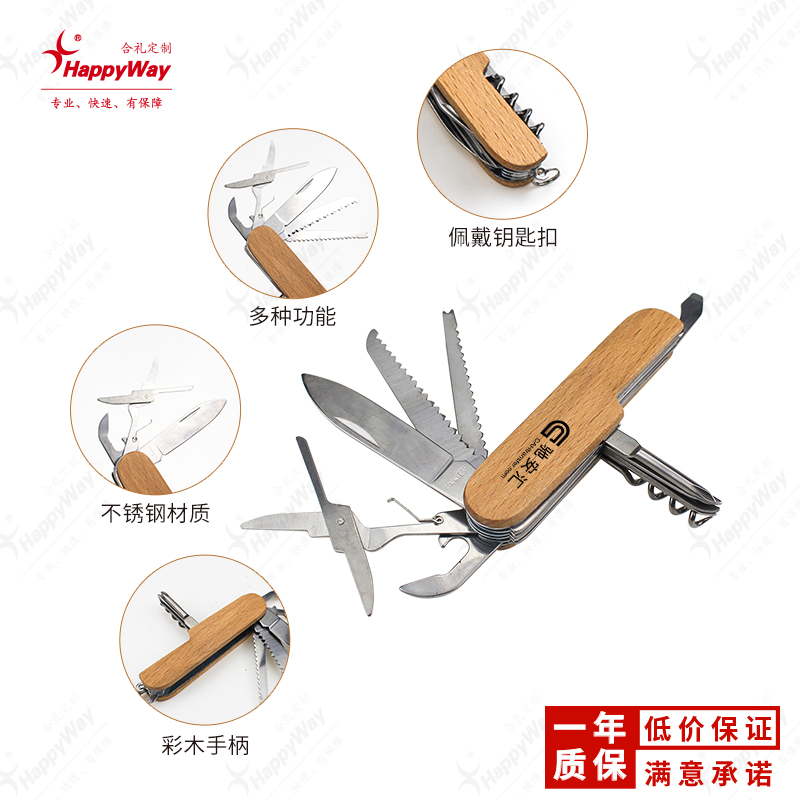 多功能彩木11开折叠刀具 10个起可印logo家居日用露营实用广告礼品