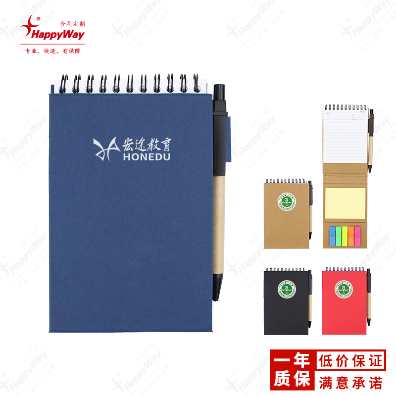 翻盖牛皮纸带笔便利贴便签本 10个起可印logo办公学习会议宣传礼品