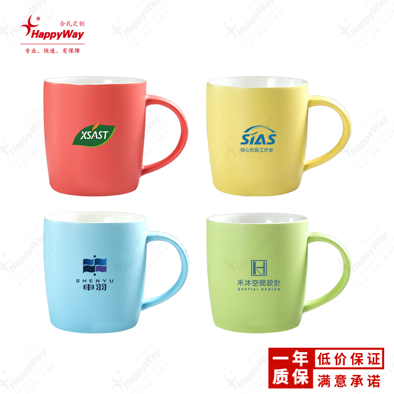 350ML简约多彩陶瓷马克杯 50个起可印logo员工福利展会活动礼品
