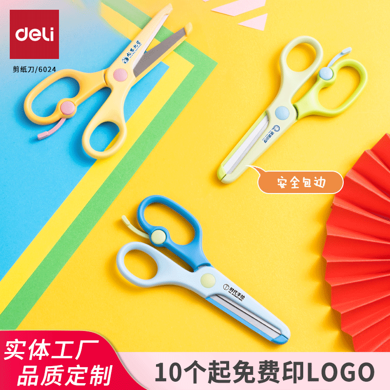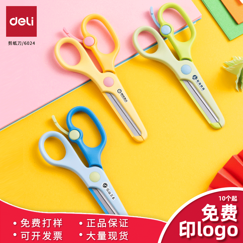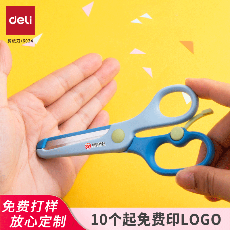 得力6024学生手工剪刀 1个起可印logo定制广告二维码宣传活动礼品