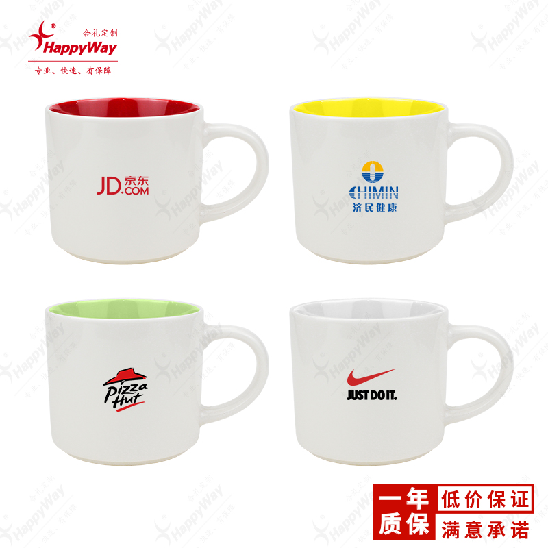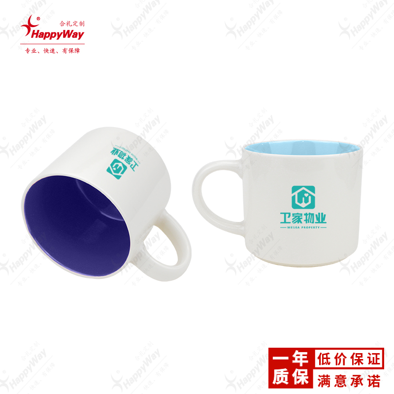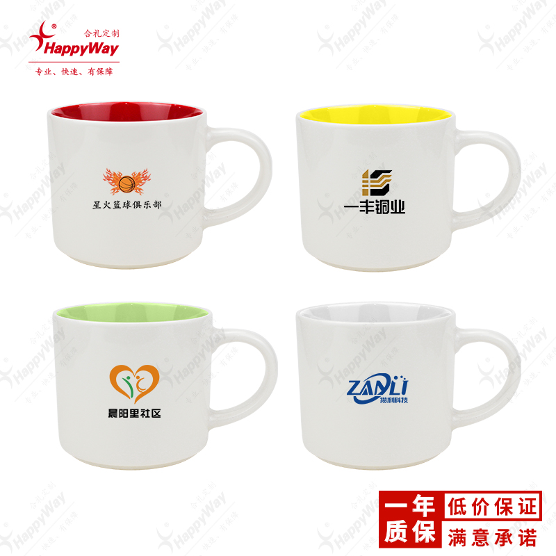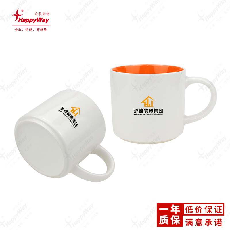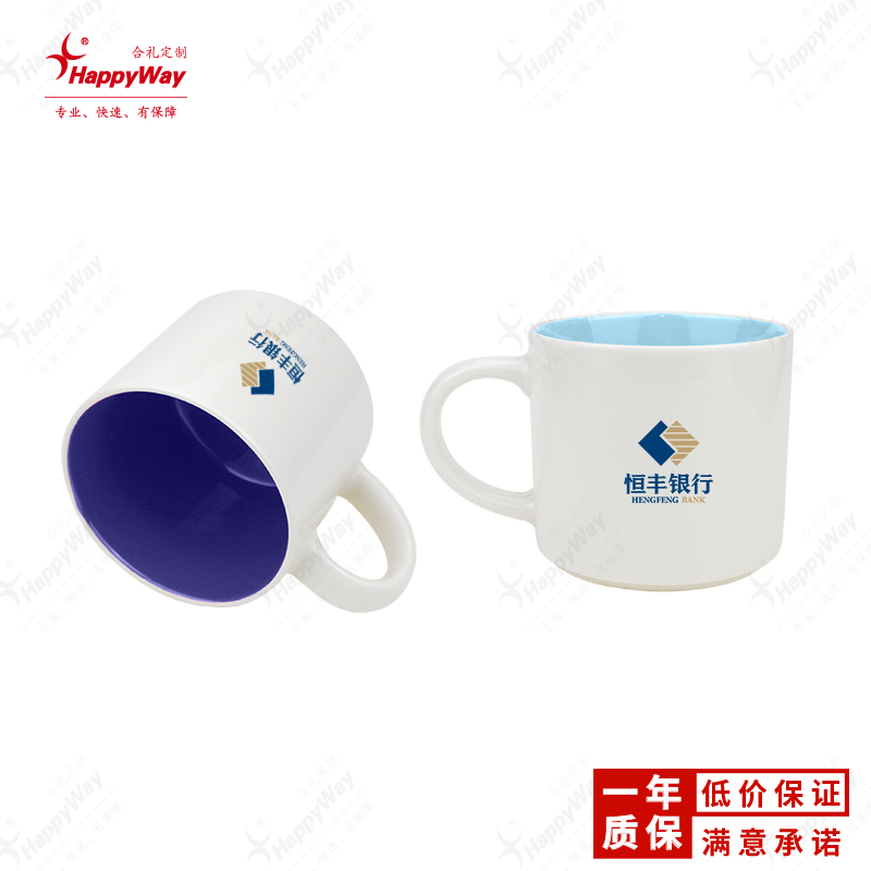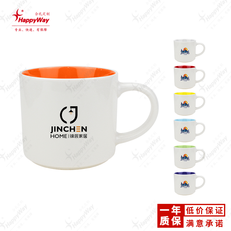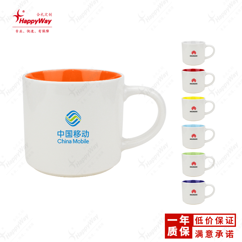 450ML外白内彩大套筒陶瓷马克杯 50个起可印logo员工福利展会礼品