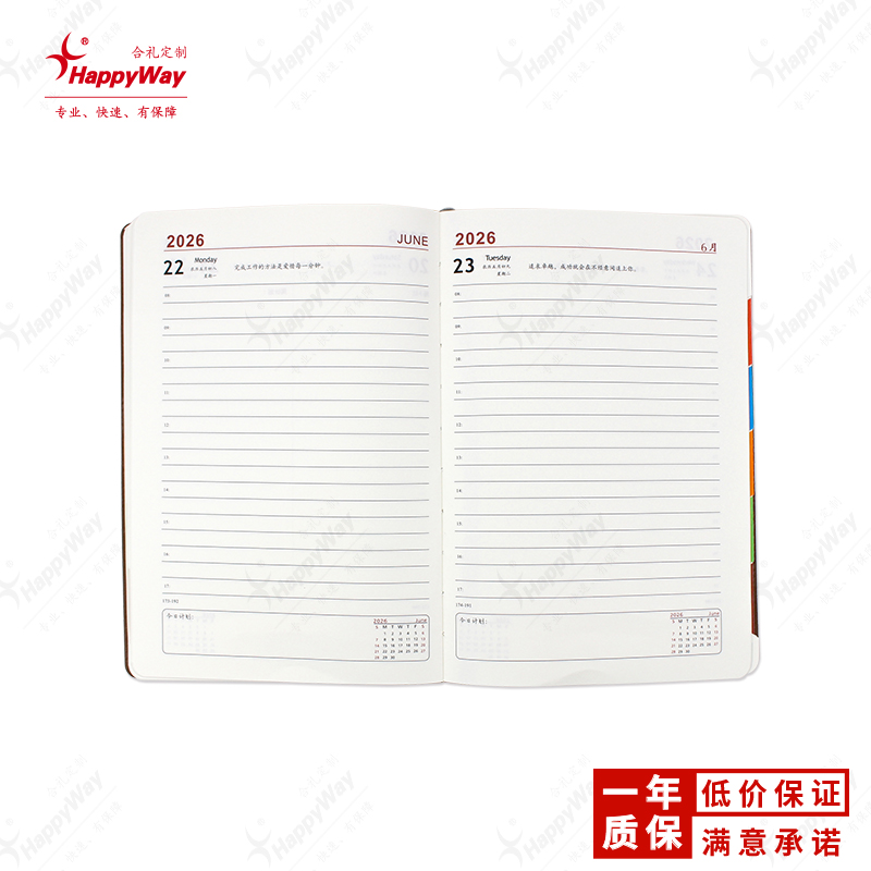 A5侧边切口日程笔记本 10个起可印logo办公学习会议广告宣传礼品