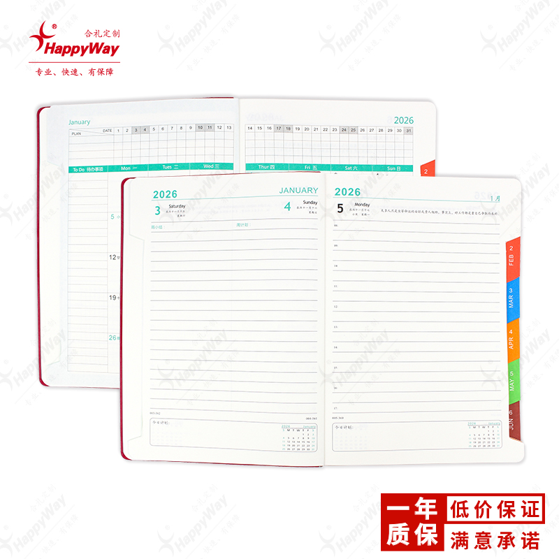 B5侧边切口日程笔记本 10个起可印logo办公学习会议广告宣传礼品