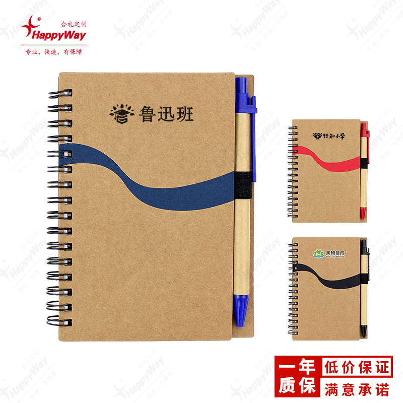 A6波浪线带笔便签本 10个起可印logo办公学习会议广告宣传活动礼品