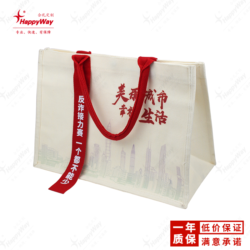 16安加厚款飘带立体帆布袋 10个起印logo家居日用办公出行广告礼品