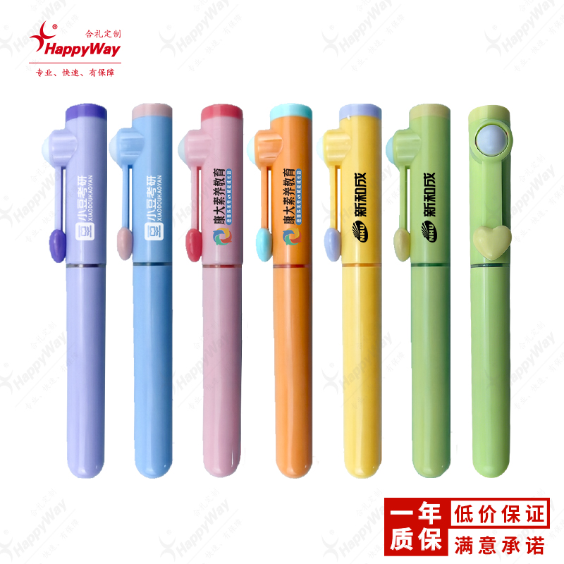 解压滚滚爱心荧光笔 10支起可印logo办公学习教育培训广告宣传礼品
