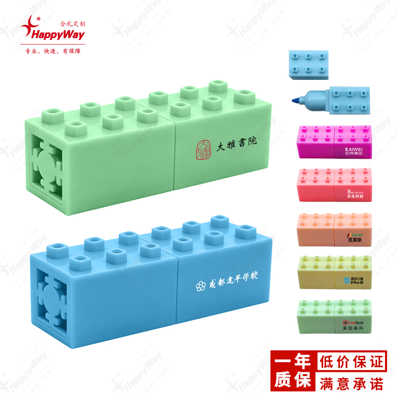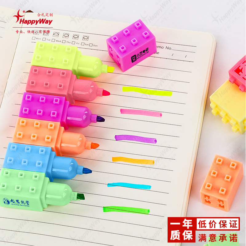 益智积木荧光笔6色套装 10套起可印logo办公学习教育活动广告礼品