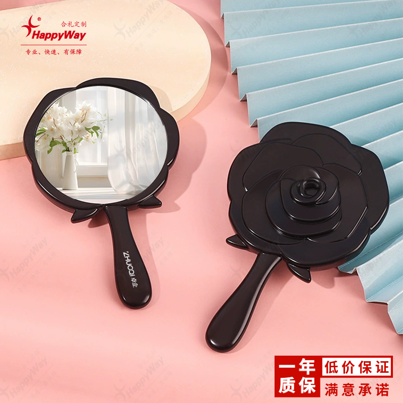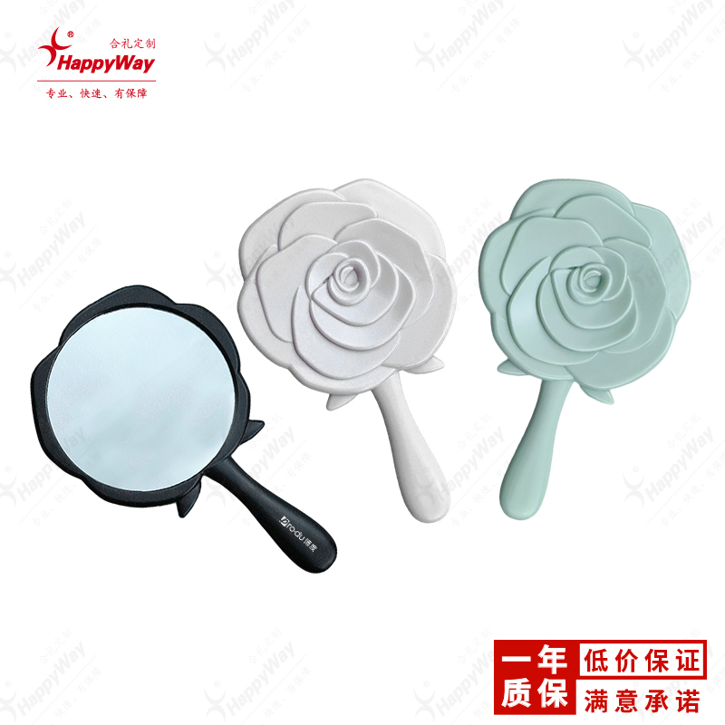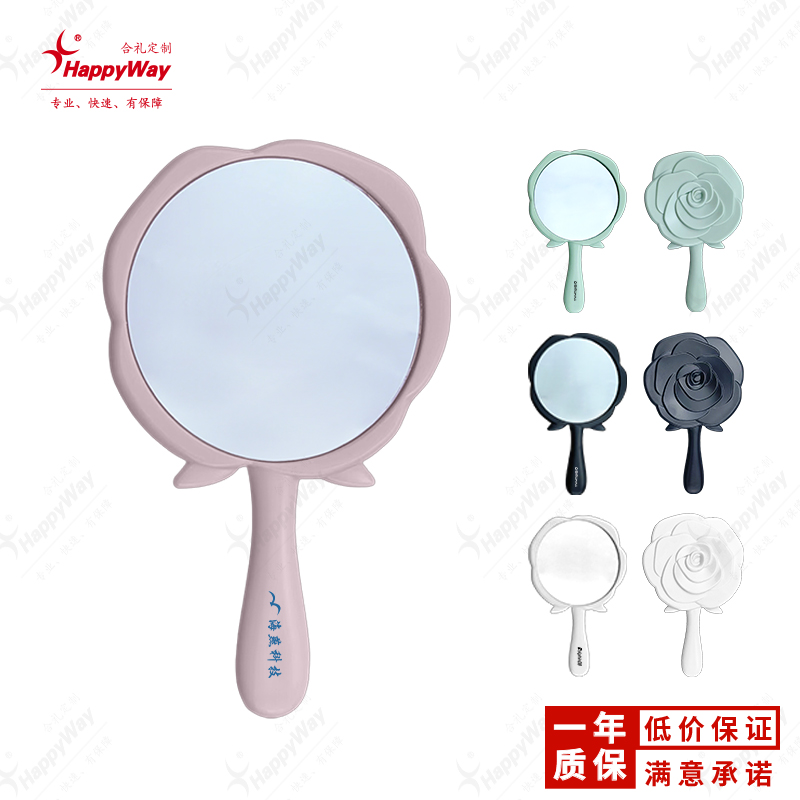 玫瑰花朵手持化妆镜 10个起可定制logo家具日用化妆福利宣传礼品