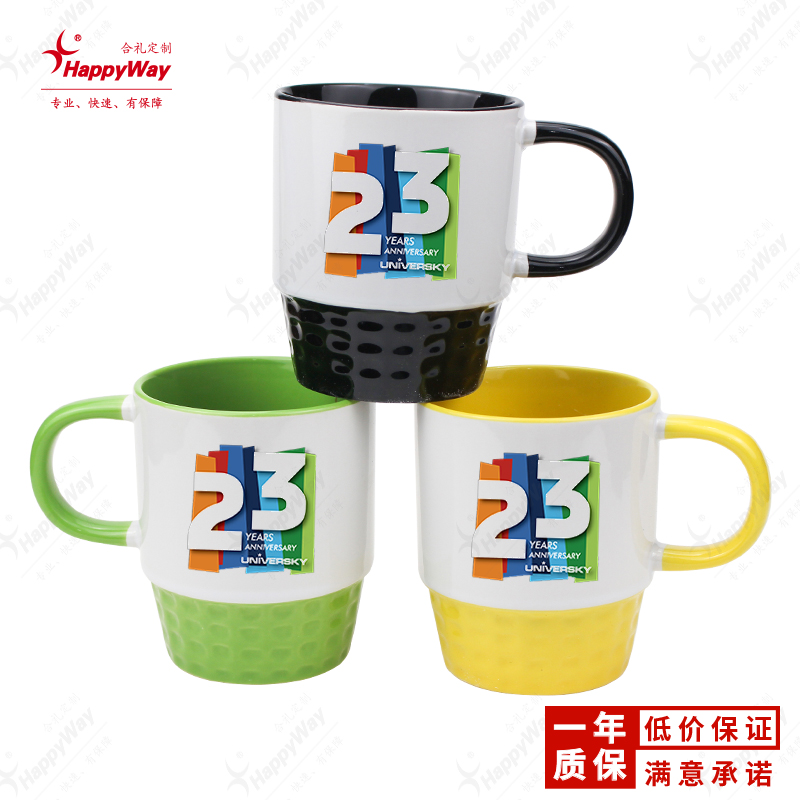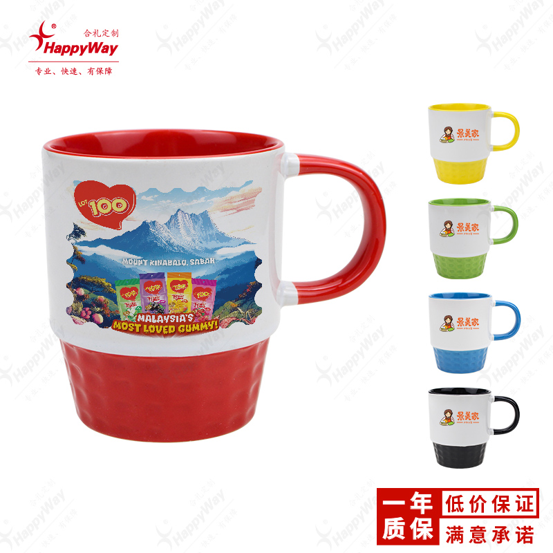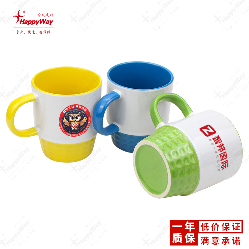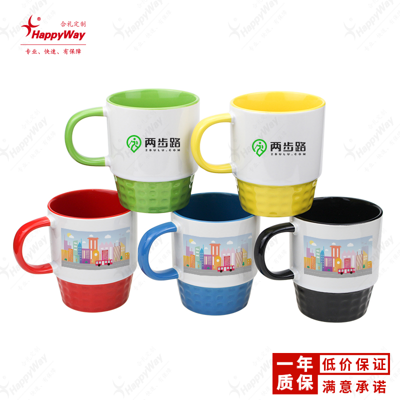 320ml创意螺纹内彩陶瓷马克杯 10个起可印logo家居日用员工福利礼品
